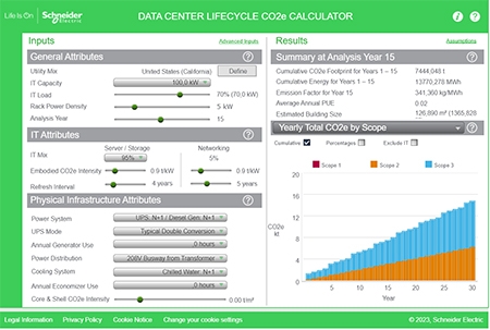 - Una "Calculadora de CO2e del ciclo de vida del centro de datos" para cuantificar los detalles que determinan el Alcance 3 en un centro de datos, como el carbono incorporado y el carbono incorporado en subsistemas.