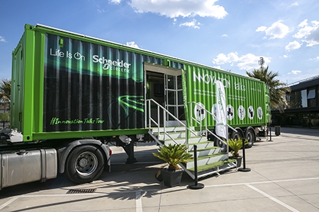 Schneider Electric y BeCúbica han creado un innovador contenedor-showroom, móvil, solar y autónomo, para recorrer la ruta de las Innovation Talks de Schneider Electric, que pasará por 27 localidades de España y Portugal, entre abril y junio de 2023. Es el primer contenedor móvil solar de nuestro país que puede seguir en funcionamiento tanto estando estacionado como en movimiento. Se estima que este innovador showroom recorrerá más de 15.000 Km por toda la península en este año.