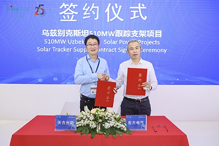 TrinaTracker ha firmado recientemente un acuerdo con Dongfang Electric International Corporation ("DEC International") para suministrar seguidores solares de 510 MW para proyectos solares en Uzbekistán. La ceremonia de firma del contrato tuvo lugar en la 16ª Conferencia y Exposición Internacional de Generación de Energía Fotovoltaica y Energía Inteligente (SNEC PV Power Expo), que tuvo lugar en Shanghái del 24 al 26 de mayo de 2023.