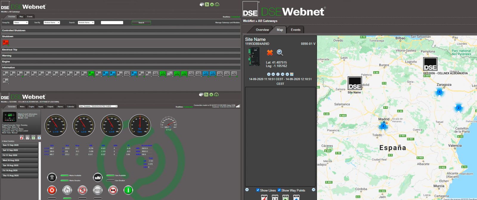 Ambos grupos electrógenos incluyen centralita de control Deep Sea Electronics, DSE 7320 MKII, extendiendo sus capacidades mediante la incorporación de un módulo de comunicación DSE 890. Mediante la introducción de este módulo, se hace posible el control de los generadores desde cualquier ordenador o dispositivo móvil, además de almacenar y proporcionar datos de monitorización y comunicaciones a través del sistema DSEWebNet.