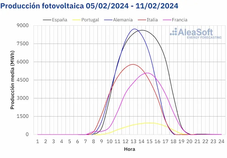 En cuanto a la semana del 12 de febrero, las previsiones de producción solar de AleaSoft Energy Forecasting indican que Alemania, Italia y España verán un retorno a la tendencia ascendente.