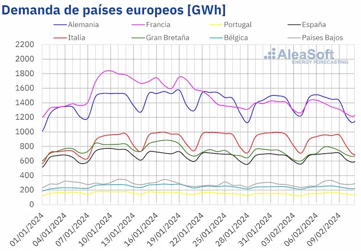 Las previsiones de demanda de AleaSoft Energy Forecasting para la semana del 12 de febrero indican un aumento en la demanda en Alemania, Portugal, Italia, Gran Bretaña y los Países Bajos, mientras se espera un descenso en Francia, España y Bélgica.
